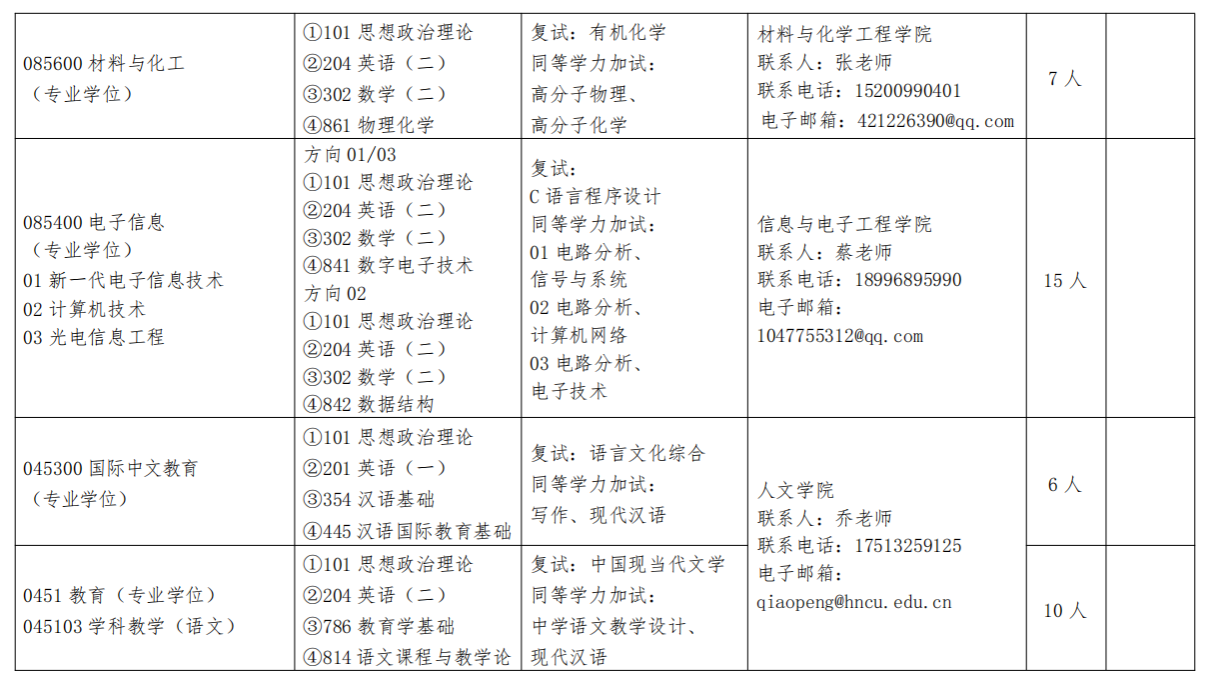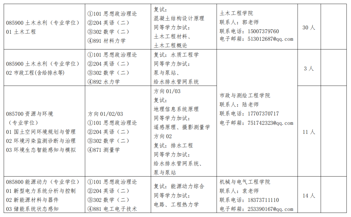(二)专业学位硕士研究生招生专业:资源与环境、土木水利、工程管理、电子信息、材料与化工、国际中文教育、能源动力、教育、设计、音乐。