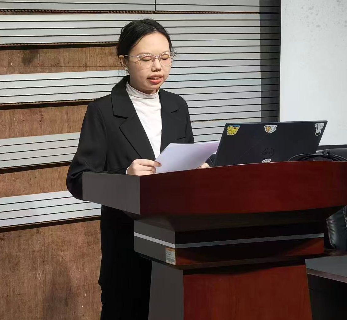 紧接着,部长团办公室主任冯灿代表发言。她分享了对所在部门工作的规划与设想,并承诺将会同部门成员凝心聚力、分工协作,推动建立更畅通的部门联络机制,高效完成各项工作任务,为团委学生会的发展添砖加瓦。
