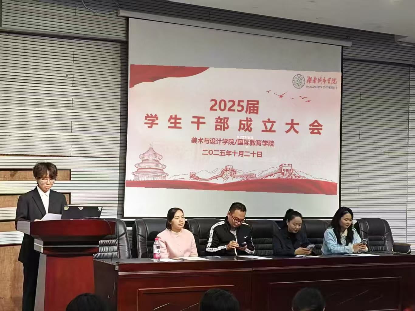 为进一步加强学院团委学生会组织建设,充分发挥学生组织自我服务,自我管理,自我教育的职能,推动学生工作持续高质量发展。我院于10月20日晚上七点在美艺楼107隆重举行了2025届学生干部成立大会。出席本次会议的有学工办李柏老师、颜丽珍老师、高慧鑫老师、杜鑫茹老师以及我院团委学生会全体成员,此次会议由办公室委员胡江涛主持。