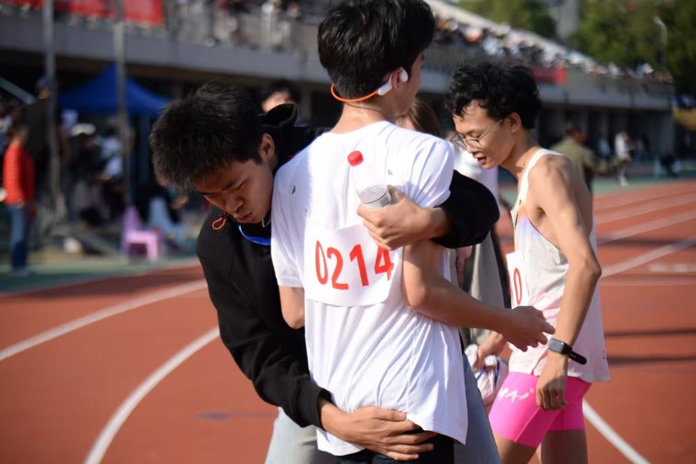 赛场之外,志愿服务者们忙碌的身影成为一道亮丽风景线。他们坚守在检录处、补给站、医疗点等岗位,有序开展引导、服务、保障工作,用耐心与细心为运动会保驾护航。裁判员们秉持公平、公正、公开的原则,严格执裁每一个项目,确保比赛顺利进行。各学院同学们,挥舞着学院彩旗、喊着嘹亮口号,为运动员们加油鼓劲,欢呼声、喝彩声此起彼伏,让赛场充满了青春活力。