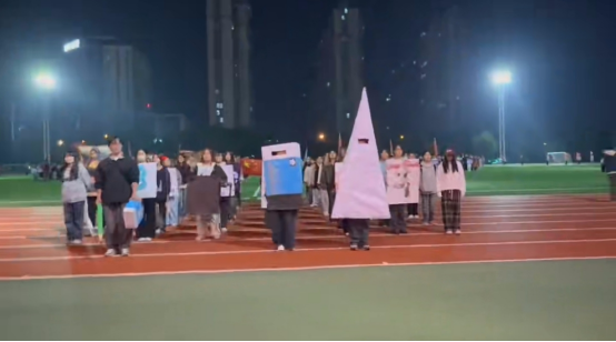 与此同时,运动会方阵的排练也同步开展:同学们以整齐的队列、饱满的状态反复打磨队形变换与展示细节,让青春的朝气与集体的向心力在每一次齐步走中愈发鲜明。