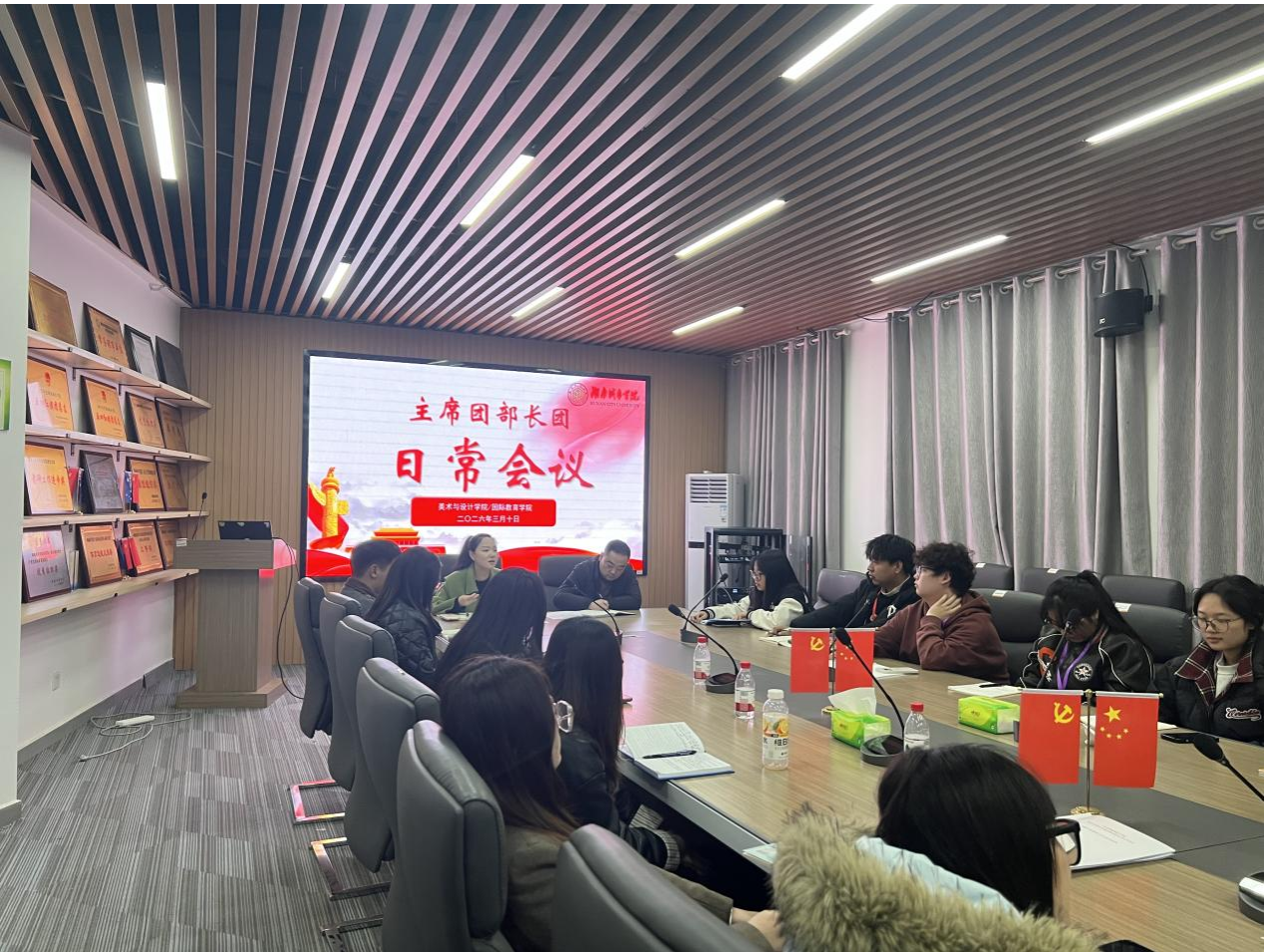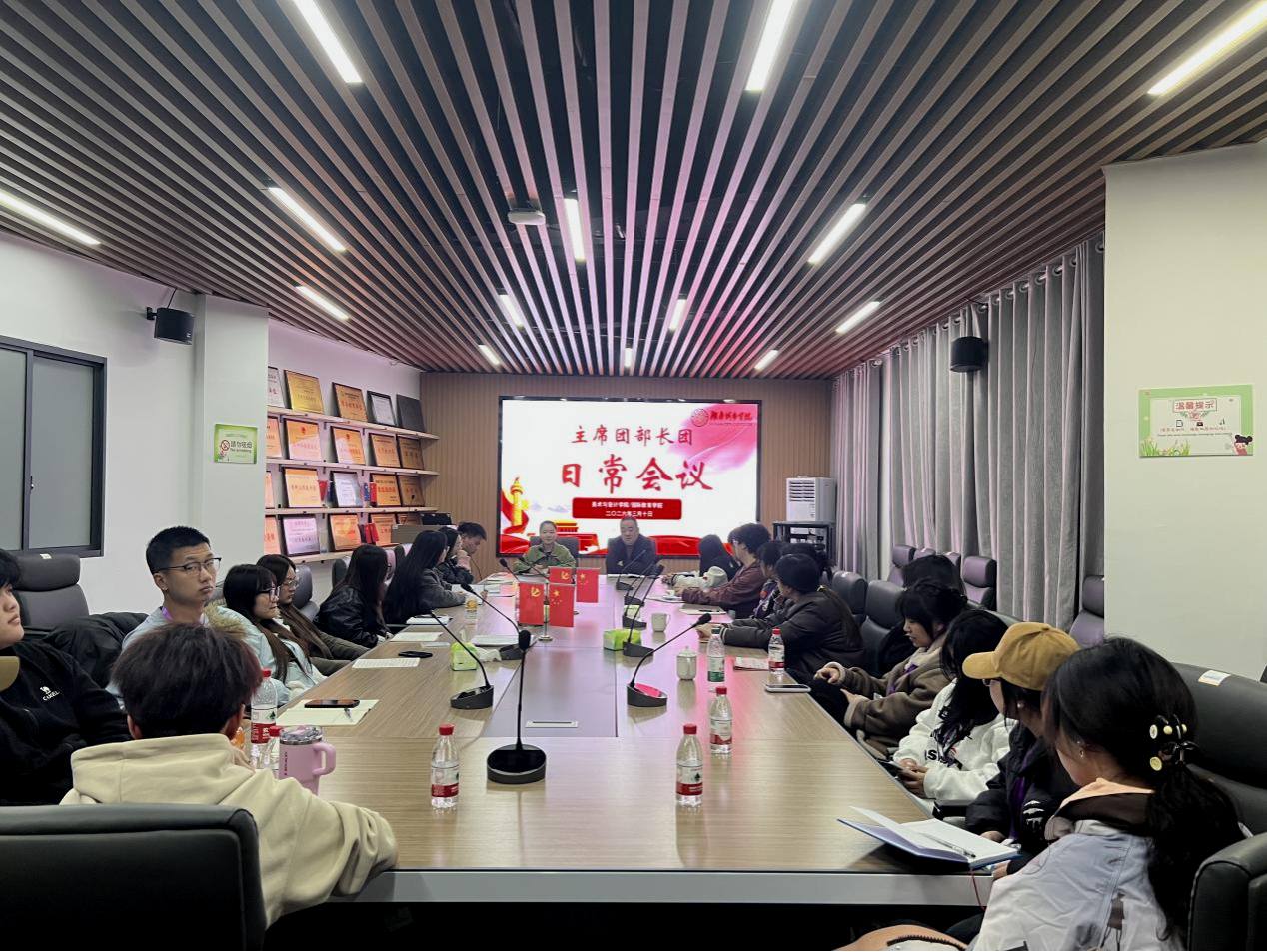 凝心聚力,务实笃行。为锚定新学期工作目标、明确下一阶段重点任务与发展方向,进一步提升学生干部队伍的执行力与凝聚力明晰责任分工,保障美院各项工作平稳有序开局。美术与设计学院/国际教育学院召开团委学生会主席团部长团日常工作会议,院党委副书记李鑫、学工办杜鑫茹出席本次会议,主席团部长团成员参会。