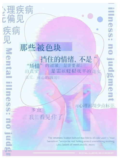 在设计类赛道,同学们将对心理健康的理解转化为多元的视觉语言,用画笔、软件打破心理偏见,每一幅作品都藏着抚慰心灵的力量。