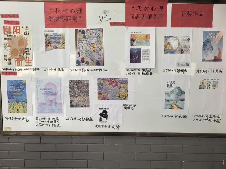 部分获奖的优质作品已在学院官方公众号、线下展览区同步展出,无论是治愈系的设计海报,还是戳人心扉的成长随笔,都值得大家驻足品鉴。欢迎同学们前来打卡学习,一起汲取心理正能量!