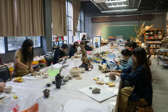 有的小组合作打造创意茶具,有的专注雕琢小巧摆件,指尖翻飞间,黏土逐渐成型,欢声笑语中,语言障碍悄然打破。大家在亲身感受制陶乐趣、领略传统工艺魅力的同时,不仅锻炼了英语口语表达能力,更在互帮互助的实践中拉近了距离,增进了跨文化情谊。