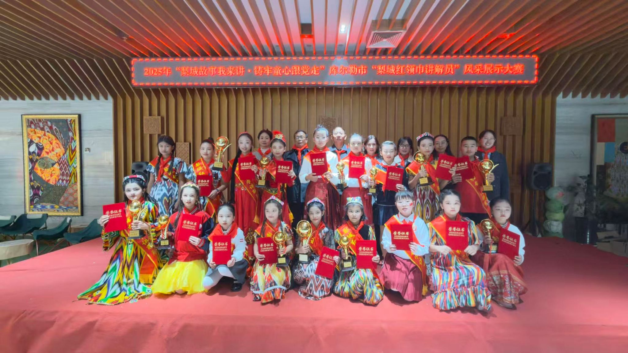 “艺术的价值,不仅仅在于改变物质生活,更在于滋养人的精神世界,点亮内心的希望之光。”出身于农村家庭的任帅宇,对此有着切身的体会,他深知教育,特别是艺术教育,对于开阔儿童视野、启迪心智、培养审美具有不可替代的重要作用。看到村里孩子们对绘画充满好奇却又缺乏指导的眼神,他在村里毅然创办了“小白杨艺术课堂”。利用工作之余的休息时间,他义务为孩子们教授绘画基础知识。创办之初,条件极为简陋:没有画材,他便积极联系母校湖南城市学院,发起了名为“彩笔计划”的公益募捐活动,汇集来自远方的爱心物资;没有固定的教学场所,村委会的大院、村头枝繁叶茂的大树下,便成了露天的艺术课堂。渐渐地,孩子们原本稚嫩的笔触下,开始流淌出丰富多彩的画面:天山脚下沐浴阳光、热烈盛开的向日葵;葡萄架下身着彩裙、翩翩起舞的维吾尔族姑娘;还有那沙漠边缘傲然挺立、象征顽强生命力的胡杨林……每一笔色彩,都在悄然唤醒孩子们对家乡之美的重新发现与深沉热爱。一位名叫古丽娜尔、如今已是新疆大学美术专业大学生的女孩回忆道:“是任老师第一次让我真正意识到,我们每天生活的这片土地,天山、沙漠、葡萄园,原来是如此的美丽和富有画意。正是他当年的艺术启蒙,在我心里埋下了梦想的种子,让我立志也要像他一样,用手中的画笔去展现家乡独特的风貌,传递边疆动人的故事。”